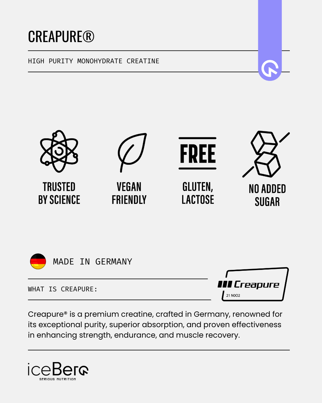 Why Creapure®? Creapure® is the purest and most scientifically validated form of creatine, making it a cornerstone of our portfolio.